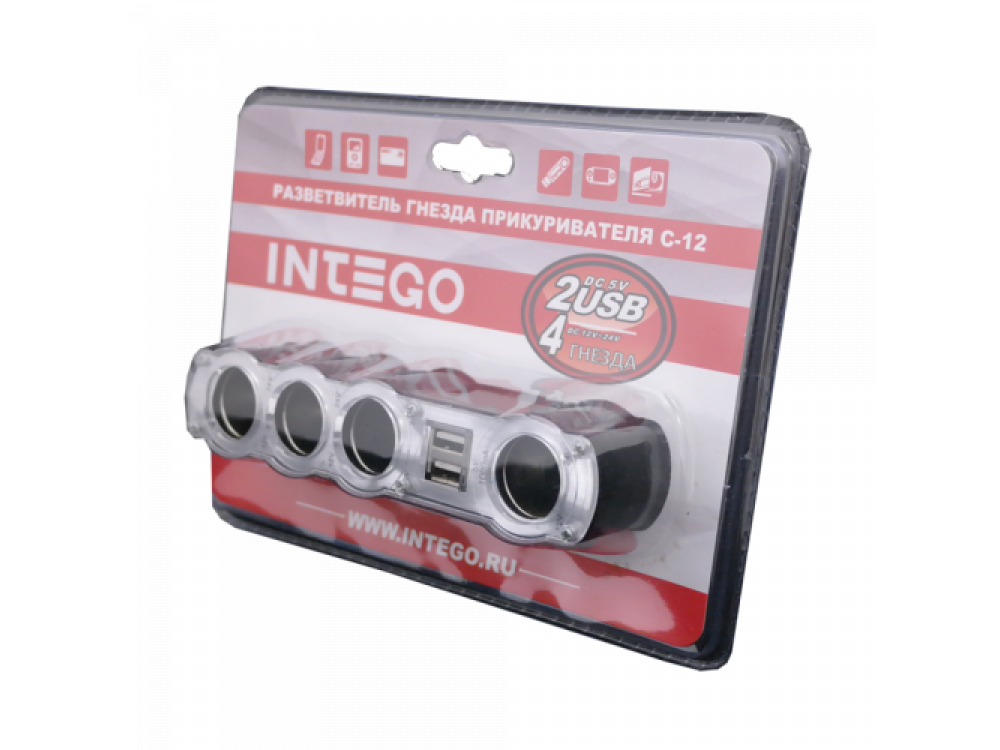 Разветвитель гнезда прикуривателя (12/24 В) на 4 входа с максимальным суммарным током нагрузки 10 А + зарядное устройство с 2 USB входами (5 V / 1000 mA).