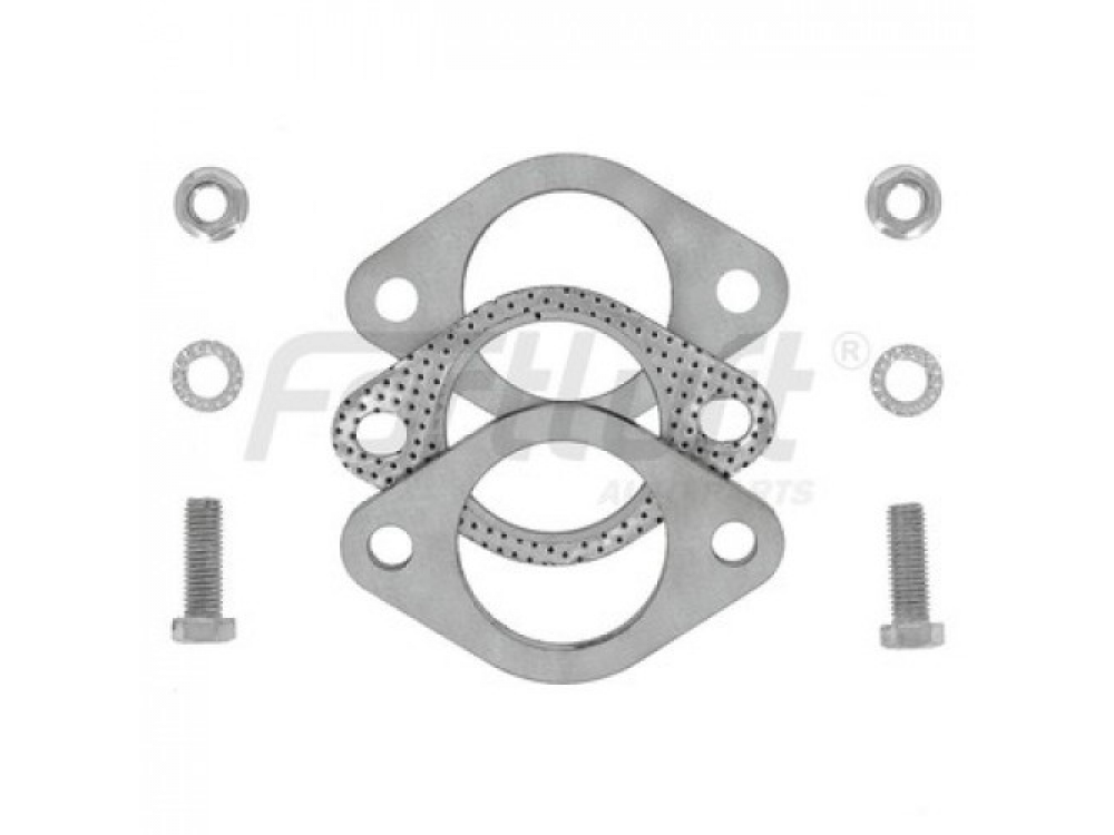 Фланцевое соединение является одним из самых основных соединений компонентов выхлопной системы. Один фланец приваривается к одной части выхлопной трубы, другой к ответной и соединяется болтами через прокладку. Толщина фланца 8мм, изготовлен фланец из нержавеющей стали, что обеспечивает долгосрочный срок эксплуатации.